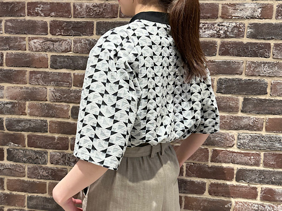 スタイリッシュな印象の幾何柄のトップス。