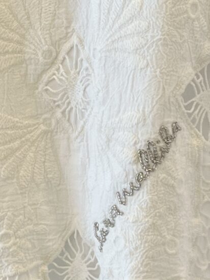 ブランドネームのビーズ刺繍が。