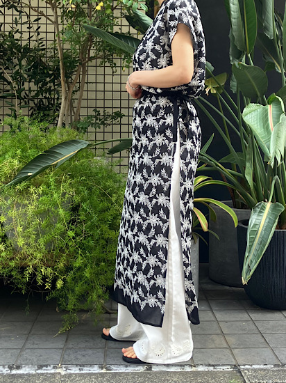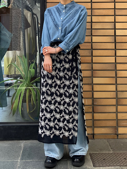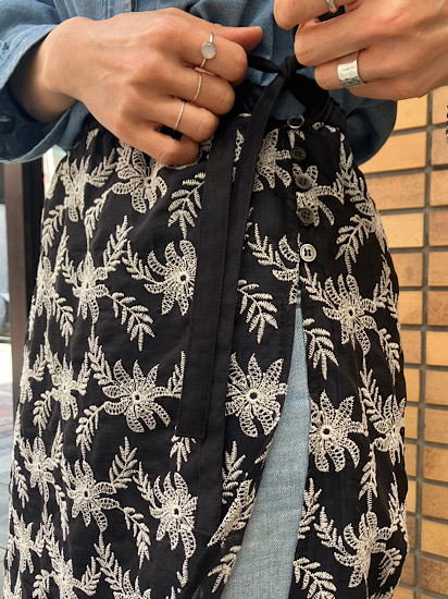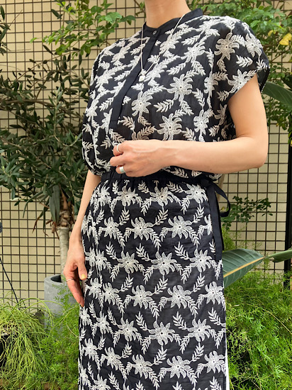 同素材のフレンチブラウスとのセットアップはもちろん、