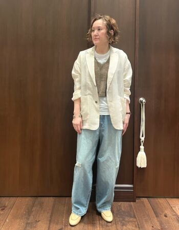 ポリエステルツイル ハイウエストパンツ WEEKプリント ロングブラウス ラクトリングパーツ イヤリング