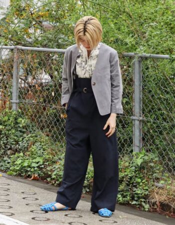 タートルネック合わせだとブラウスも長く着回せます。 古着ちっくなストライプにブラウンが可愛いブラウスです。 カラーパンツとの合わせが◎