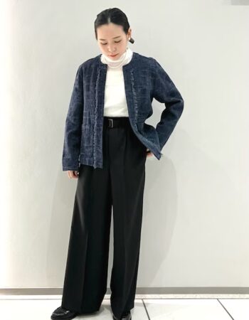 春らしい柔らかな色味を使ったコーディネートですが、甘い感じにならないように意識しました。