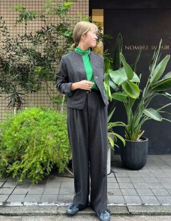 ワンピース一枚の着こなしにプラスしたいのがレギンス。カットソーならではのリラクシングな履き心地が夏におすすめです。