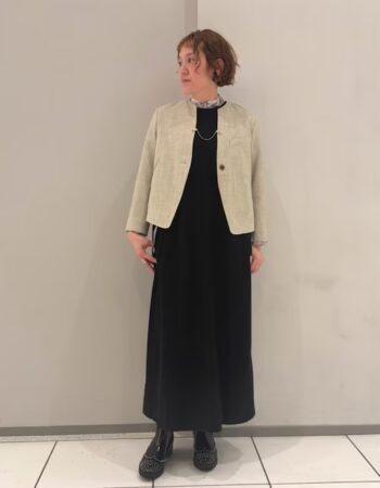 さらりとしたコットン100%なので、今の時期の羽織としてもおすすめです。ボトムスにブラウンを合わせて秋らしく。