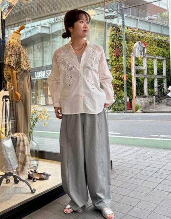 存在感のあるニットスカート 体のラインを拾わない形がうれしいポイントです。