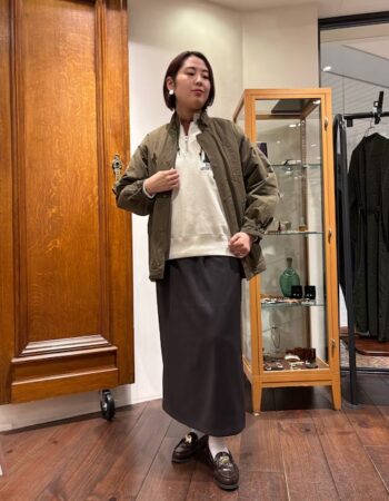 もこもこの厚みのあるカーディガンと合わせることで今の時期からでもすぐに着れ、ジャケット変わりとしても使いやすく活躍します☆