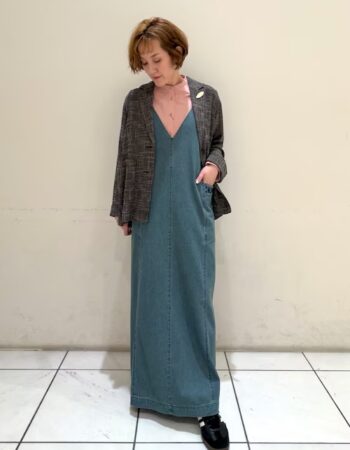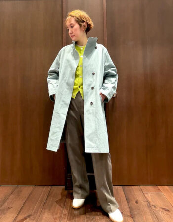 ビビットなカラーを和らげて、着こなしやすくしてくれるキナリ。