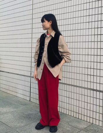 オーガニックツイル スラックスパンツ テンセル刺繍 衿付キショートシャツ ストレッチリブ 2WAYキャミ