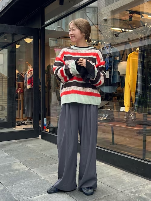 インナーにフレアスリーブのカットソーを合わせて、メンズっぽい着こなしも可愛らしい印象に。