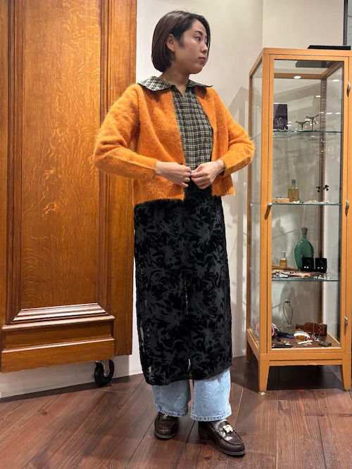 オレンジの色味がかわいいアルパカカーディガン。