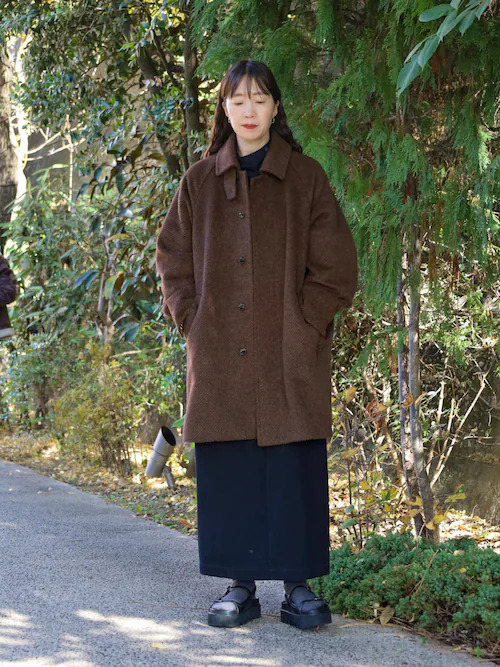 ミドル丈コートにマキシ丈の組み合わせは個人的に好きなバランスです。