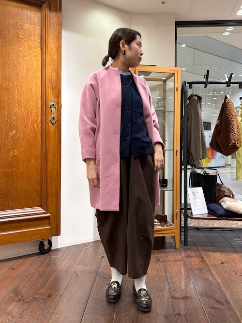 ネイビー×ブラウンの合わせはトレンド感のある冬の組み合わせに。