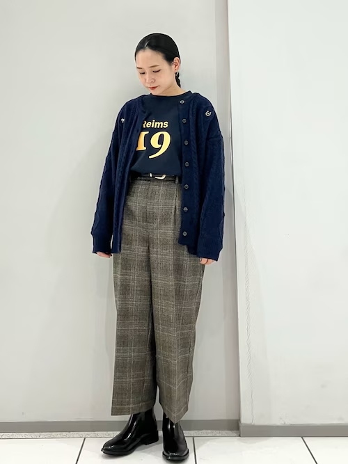 チェックの8分丈パンツにショートブーツを合わせるだけで、トラッドな雰囲気満載のコーディネートが出来上がり。