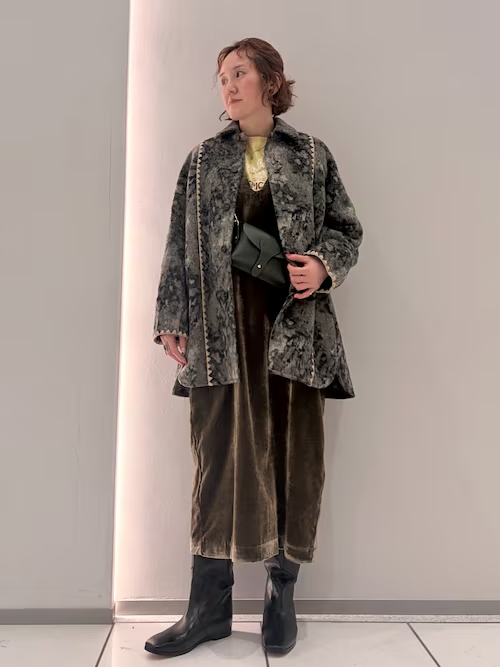 コートの色合いとベルベット。インパクトある組み合わせですが、ダークトーンでまとめると意外にも好相性です◎