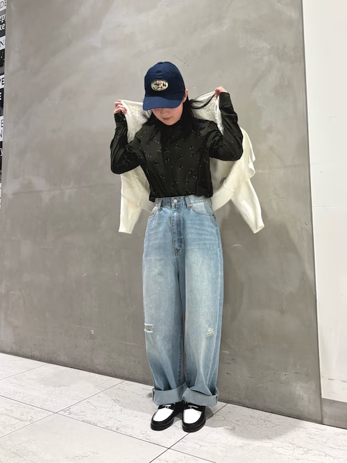 今回はあえてデニムを合わせ、上品×カジュアルのミックスしたコーディネートにしました
