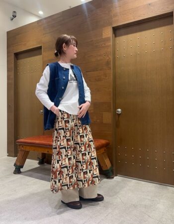 甘くなりすぎない柄感なので、 ブラックのボトムと合わせて大人っぽくまとめました。