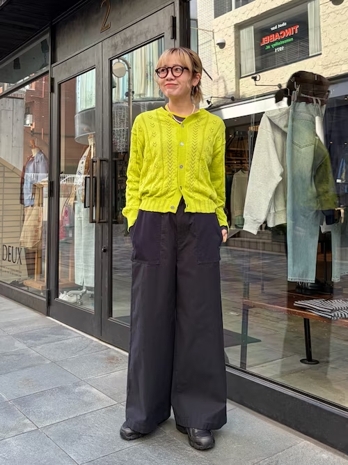 ライトグリーンのカーデを主役に色味をまとめてみました◎