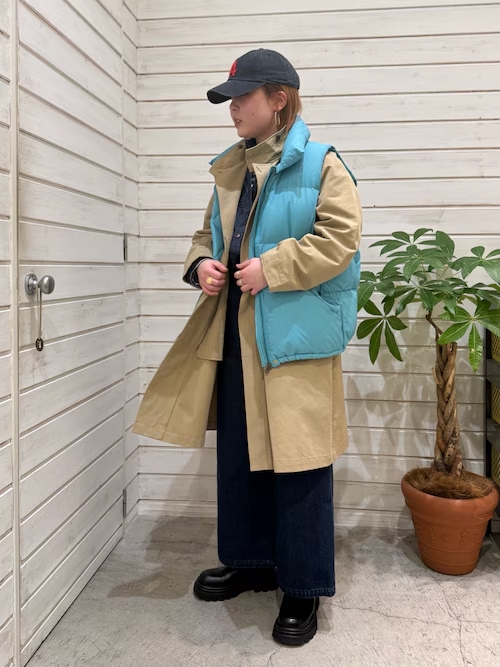 とはいえまだ寒いので、ダウンベストをレイヤード。