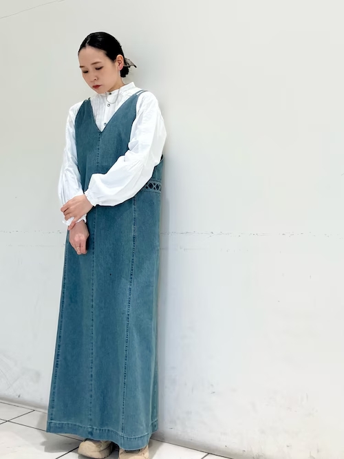 すっきりとしたシルエットで刺繍がワンポイントのデニムワンピース。