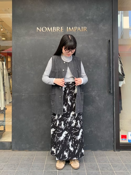 ハードになりがちなデニムアイテムですが、ウエストを絞れば上品な印象に。