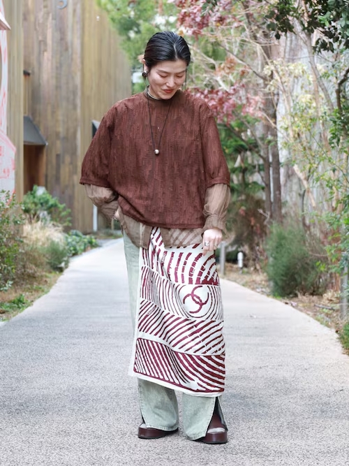 こちらに合わせ赤みのブラウンアイテムを散りばめました。