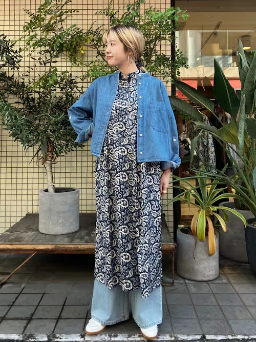 ペイズリーワンピをメインに、デニム×ホワイトでさわやかなスタイリングに。