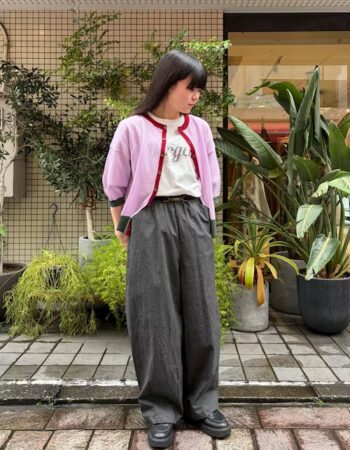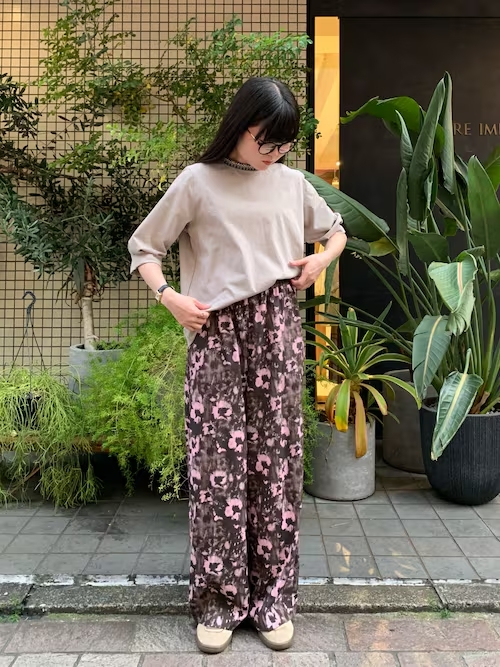 フラワーモチーフのイージーパンツ。