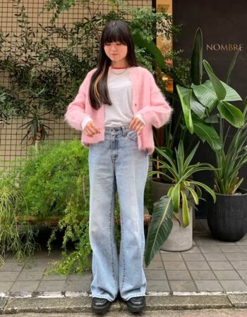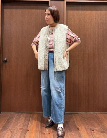 N/Cオックス ポンチョコート フォービズムロゴプリント Vネック長袖TEE 11.5ozデニム スッキリワイドパンツ バンプメッシュストライプ タックスカート