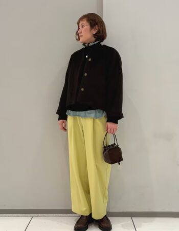 いつものコートスタイルに新しいカラーを取り入れてイメージチェンジ。 ベーシックなコーデに鮮やかなブルーが映えます。
