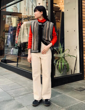 ニットベスト×デニムシャツ