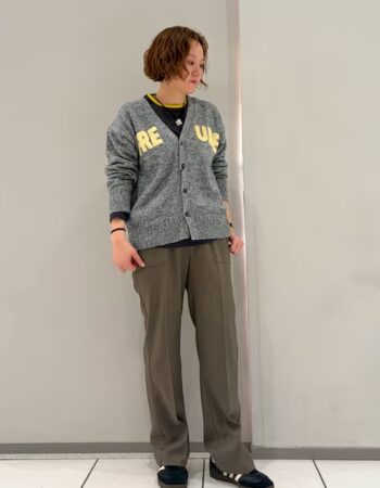 リブパンツは着回しが効く便利アイテム。 柔らか素材なのでおうちでのリラックススタイルにも◎